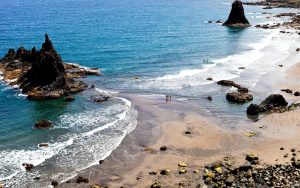 La compagnia delle simboliche rocce che bagnano le acque di Benijo conforta. Come se lì fossero le padrone. Le dimensioni della sua scura sabbia vulcanica s’ingrandiscono con la bassa marea e durante l’estate. Vicino al paese e alla spiaggia di Almáciga, questo leggendario angolo nudista permette inoltre di mangiare nel ristorante ubicato dove finisce il tratto in macchina e inizia la discesa fino alla sabbia. Anche se bisogna fare molta attenzione in mare, Benijo è semplicemente un must per gli amanti della natura.